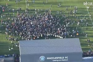 賽后第一時間麥克爾斯菲爾德球迷涌入場內(nèi),瘋狂慶祝。