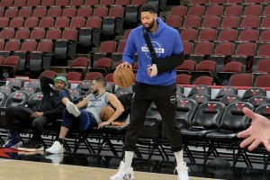 記者Mike Curtis報道,獨行俠剛在結(jié)束了賽前的投籃訓(xùn)練。安東尼·戴維斯也出現(xiàn)在了球館,看起來心情不錯,盡管他的左臂被吊帶固定,手部也纏得很厚。