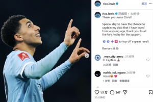 體育資訊1月11日訊 曼城在本輪足總杯10-1大勝??巳爻?,里科·劉易斯在本場比賽中接過了隊長袖標(biāo)并且獨造3球。