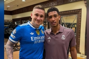 體育資訊1月11日訊 皇馬中場(chǎng)貝林厄姆更新社媒動(dòng)態(tài),轉(zhuǎn)發(fā)與一位波蘭球迷的合照。