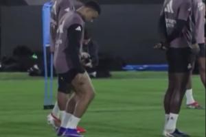 賽前的一段訓(xùn)練視頻中可以看到,姆巴佩在訓(xùn)練時謹慎地彎腿測試自己的膝蓋情況,可以看出,他尚未恢復(fù)到100%的狀態(tài)。