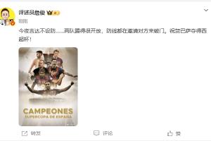 體育資訊01月12日訊 西超杯決賽,巴薩3-2擊敗皇馬奪冠。賽后,評述員詹俊發(fā)文點(diǎn)評。