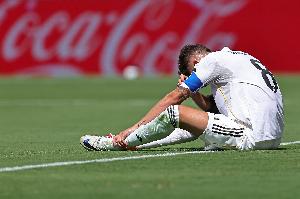 體育資訊1月12日訊 西超杯決賽,皇馬以2-3不敵巴薩無緣冠軍。本場比賽,巴爾韋德首發(fā)登場但因傷被換下?!栋⑺箞蟆氛?wù)摿藶趵缛说膫椤?/p>