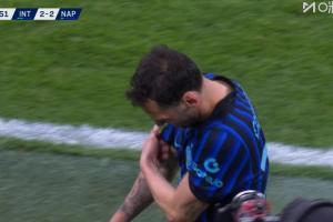 體育資訊01月12日訊 國(guó)米vs那不勒斯第87分鐘,恰爾汗奧盧無(wú)法堅(jiān)持坐地上了,之后他下場(chǎng),蘇契奇登場(chǎng)!