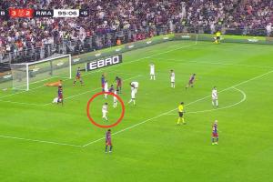 西班牙超級杯決賽,巴薩3-2擊敗皇馬奪冠。比賽的最后時刻居萊爾策動進攻,把球傳入禁區(qū)之后,皇馬得到一個絕平機會,但是卡雷拉斯錯失絕平。隨后居萊爾掀衣服發(fā)泄+怒踹草坪。