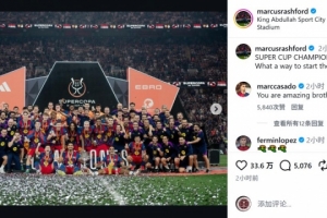 這是拉什福德加盟巴薩以來(lái)贏得的首個(gè)冠軍,他在社交媒體上曬出全隊(duì)與獎(jiǎng)杯的合照,配文:“西超杯冠軍!多么完美的新年開(kāi)局!”