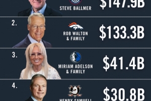 排在第四的是亨利·塞繆爾,他是冰球安納海姆鴨隊(duì)老板。