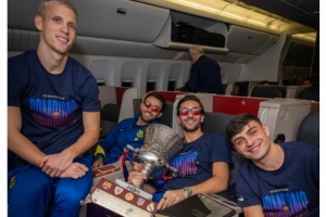 巴薩全隊已經(jīng)返回巴塞羅那,俱樂部官方社媒曬出球員們在飛機內(nèi)與獎杯的合照,配文:“享受飛行旅途。”