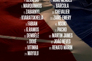 前鋒:7-克瓦拉茨赫利亞、 9-貢薩洛·拉莫斯、10-登貝萊、14-杜埃、29-巴爾科拉