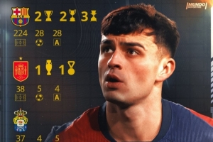 《世界體育報(bào)》列出了佩德里職業(yè)生涯至今的數(shù)據(jù),他總計(jì)出戰(zhàn)299場比賽,打進(jìn)37球,助攻37次,贏得8座冠軍獎杯。