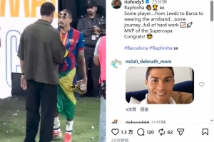 費迪南德參與了這場比賽的解說工作,他在社交媒體上曬出賽后與拉菲尼亞交流的視頻,并配文:“拉菲尼亞,真是個了不起的球員,從利茲聯(lián)到巴薩,再到如今戴上隊長袖標,這是一段充滿汗水和努力的旅程 ???? 西超杯MVP! 恭喜!”