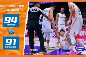 2025-2026賽季CBA常規(guī)賽第十四輪,福建晉江文旅男籃遠(yuǎn)赴北京國家奧林匹克體育中心體育館,客場挑戰(zhàn)北京控股男籃。面對(duì)全場最多落后23分,籃板僅為對(duì)手一半的逆境,主隊(duì)福建晉江文旅男籃下半場掀起瘋狂追分浪潮,在比賽最后5秒絕平比分??!雖然終場最后0.7秒被對(duì)手三分絕殺,以91-94憾負(fù)對(duì)手,但今晚主隊(duì)打出本賽季最具韌性一戰(zhàn)。四節(jié)比分分別是:9-23,22-25,29-21,31-25(福建晉江文旅男籃在前)。