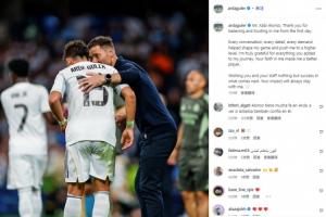 體育資訊01月13日訊 皇馬官宣主帥阿隆索下課,中場居萊爾在社媒發(fā)表動態(tài)向阿隆索告別。