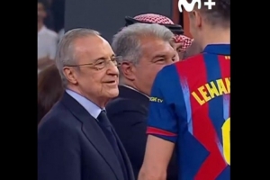 在頒獎環(huán)節(jié),攝像機(jī)也捕捉到了皇馬主席弗洛倫蒂諾和萊萬之間的互動。《世體》指出,弗洛倫蒂諾在與萊萬多夫斯基握手時,則流露出既欽佩又無奈的復(fù)雜神情。 皇馬主席面帶微笑地向這位波蘭球員打招呼,并含蓄地稱他為“混蛋”,以此來表彰這位37歲高齡卻打進(jìn)精彩進(jìn)球的波蘭球員的實力。萊萬多夫斯基聽到后也露出了笑容。