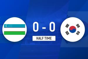 半場戰(zhàn)罷,韓國U23隊(duì)0-0烏茲別克斯坦U23隊(duì)。