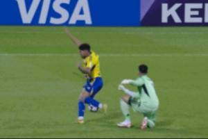 比賽第50分鐘,阿布扎比統(tǒng)一沙姆西逆天大腳掄空,隨后拉倒對手,VAR介入沙姆西吃到“紅點(diǎn)”套餐,但隨后布拉希米的點(diǎn)球卻打在橫梁上。