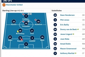替補(bǔ)席則是:迪恩·亨德森、菲爾·瓊斯、拜利、范德貝克、林加德、馬塔、阿瑪?shù)?、格林伍德、馬夏爾。