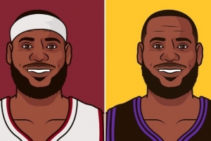 賽后,美國(guó)數(shù)據(jù)媒體StatMuse對(duì)比了熱火時(shí)期詹姆斯和41歲后詹姆斯的數(shù)據(jù)。