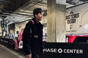 比賽末節(jié),楊瀚森倒地搶球時后腦勺磕到勇士球員理查德的膝蓋,他在簡單休整后選擇回到場上繼續(xù)比賽。
