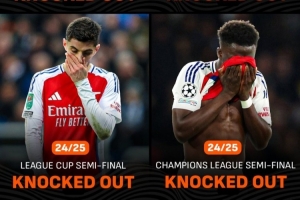 據(jù)Live Score統(tǒng)計(jì),阿森納各項(xiàng)賽事近4次半決賽皆出局,這是該俱樂(lè)部歷史上最長(zhǎng)的半決賽連續(xù)出局紀(jì)錄。