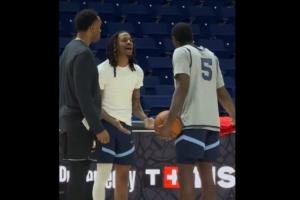 今日灰熊踩場(chǎng)訓(xùn)練,莫蘭特和隊(duì)友文斯·威廉姆斯疑似爭(zhēng)吵,一開始兩人在討論某個(gè)話題,指著球場(chǎng),后續(xù)上升到了爭(zhēng)吵,有助教前來拉開也無濟(jì)于事,兩人互相攤手,莫蘭特言辭激烈,最終兩人不歡而散。