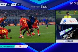 體育資訊01月15日訊 國米vs萊切第25分鐘,博尼禁區(qū)內(nèi)倒地,裁判給了點(diǎn)球,但到場邊看VAR后,裁判判罰不是點(diǎn)球!