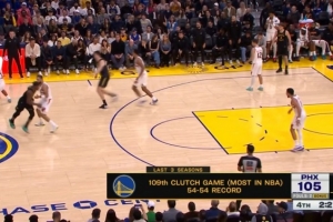 比賽第四節(jié)雙方雙方比分緊咬,轉(zhuǎn)播方曬出一組數(shù)據(jù):勇士近3個賽季有109場比賽打到關(guān)鍵時刻(含本場),為聯(lián)盟最多!