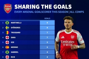 體育資訊1月15日訊 聯(lián)賽杯半決賽首回合比賽,本·懷特破門,阿森納客場3-2擊敗切爾西,據(jù)德國轉會市場統(tǒng)計,本·懷特是本賽季阿森納隊內第16位破門球員。