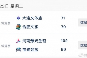 合肥文旅79-71大連文體旅,約翰遜獨(dú)得23分7籃板6助攻,納雷德18分8籃板,卡耶10分。大連女籃庫(kù)珀23分,李雨萌16分,付金秋11分6籃板。