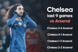 體育資訊1月15日訊 本輪聯(lián)賽杯半決賽首回合,切爾西主場2-3不敵阿森納。這也延續(xù)了他們對陣槍手的頹勢表現(xiàn)。