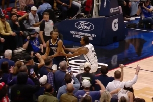 真有喜感!大洛底角坐地炮連續(xù)虛晃 凱肖恩·喬治蹦蹦跳跳干擾