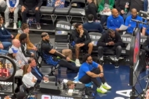 獨行俠隊記Grant Afseth曬出加福德在場邊拉伸腳踝的鏡頭,并寫道:“看起來丹尼爾·加福德正在嘗試?yán)焖挠夷_踝——自訓(xùn)練營以來,這個部位就一直斷斷續(xù)續(xù)地困擾著他?!?/p>