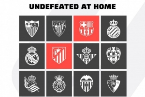 體育資訊1月15日訊 據(jù)西甲官方統(tǒng)計,巴薩和馬競是本賽季僅有的兩支西甲主場不敗球隊。