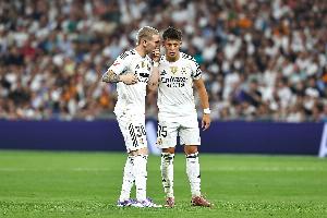 維尼修斯和居萊爾作為被寄予厚望的兩位領(lǐng)軍人物,都沒能站出來。如一些專業(yè)人士所預測的那樣,馬斯坦托諾的情況也類似,除了一個幸運進球之外,他沒有展現(xiàn)出可以挑戰(zhàn)亞馬爾,爭奪世界足壇霸主地位的實力??傊褪?,完全失控,無人領(lǐng)頭。