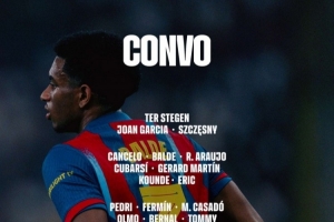 體育資訊1月15日訊 北京時(shí)間明天凌晨4點(diǎn),巴薩將在國王杯16強(qiáng)戰(zhàn)中客場(chǎng)對(duì)陣桑坦德競(jìng)技,巴薩公布了此役的球員名單,冬窗加盟的坎塞洛在列,德容停賽。