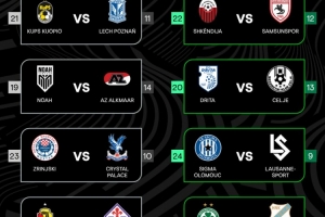 體育資訊1月16日訊 歐足聯(lián)官方公布了歐協(xié)聯(lián)淘汰賽附加賽對陣情況,喬治羅尼亞和佛羅倫薩交手,水晶宮的對手則是日林斯基。