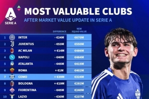 體育資訊12月24日訊 德國(guó)轉(zhuǎn)會(huì)市場(chǎng)列出了意甲球隊(duì)身價(jià)排名,國(guó)米、尤文、米蘭前三。