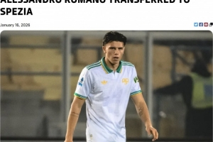 體育資訊1月17日訊 羅馬官方宣布,青訓中場球員亞利桑德羅·羅馬諾被租借到意乙球隊斯佩齊亞。