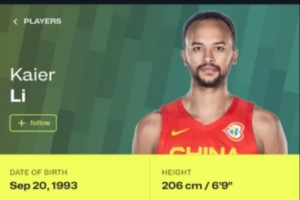 國(guó)際籃聯(lián)資料顯示 李凱爾所屬國(guó)家隊(duì)為中國(guó)男籃