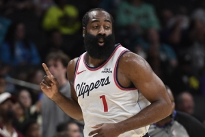 快船11勝2負(fù)期間:小卡場均32.7分6.9板2.6斷1帽 哈登24.8分7.8助