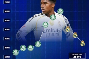 體育資訊12月24日訊 德國(guó)轉(zhuǎn)會(huì)市場(chǎng)在推特發(fā)動(dòng)態(tài),曬出了恩德里克的身價(jià)走勢(shì)。