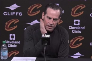 賽后,阿特金森談到比賽中的一個細(xì)節(jié),他說:“今天我本有點生氣。我記得我們一度領(lǐng)先23分,到第四節(jié)他們追到只差18分,我就開始不爽了。加蘭過來輕拍了拍我的臉,提醒我。我有時候會太緊繃。他對我說‘笑一笑?!@就是一項孩子的游戲(Kids game),比賽里必須要有快樂。作為教練,有時候你會忘了這一點,但加蘭就是那個不斷提醒我的人。孩子的游戲,好好享受這一切?!?/p>