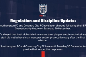 體育資訊12月24日訊 英足總官方宣布,南安普頓與考文垂因違規(guī)行為遭到指控。
