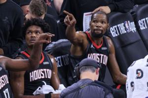 本月,火箭把西部倒五輸了個(gè)遍,先后負(fù)于爵士、獨(dú)行俠、鵜鶘、國王以及快船。