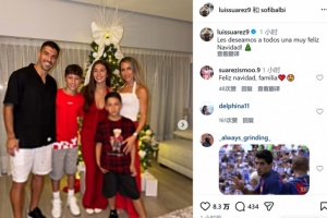 蘇亞雷斯寫(xiě)道:“我們祝你們所有人圣誕節(jié)快樂(lè)!”