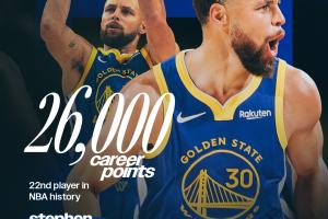 體育資訊12月26日訊 勇士與獨行俠的圣誕大戰(zhàn)第三節(jié),庫里砍下生涯第26000分!