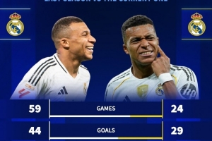 體育資訊12月27日訊 德國轉(zhuǎn)會(huì)市場(chǎng)統(tǒng)計(jì)了姆巴佩上賽季、本賽季的數(shù)據(jù),并做出對(duì)比。