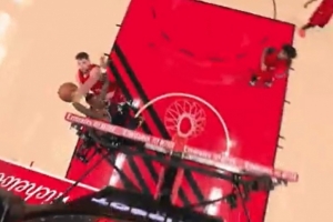 GIF-科林斯海報扣籃被帽劈叉 但克林根犯規(guī)了
