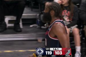 開拓者剩38.2秒失誤,快船拿回球權(quán)并手握2暫停,依舊沒叫一個