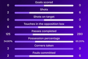 上半場(chǎng)曼城射門(mén)6次,射正0次,據(jù)Squawka統(tǒng)計(jì),曼城2025年首次英超上半場(chǎng)比賽0射正。